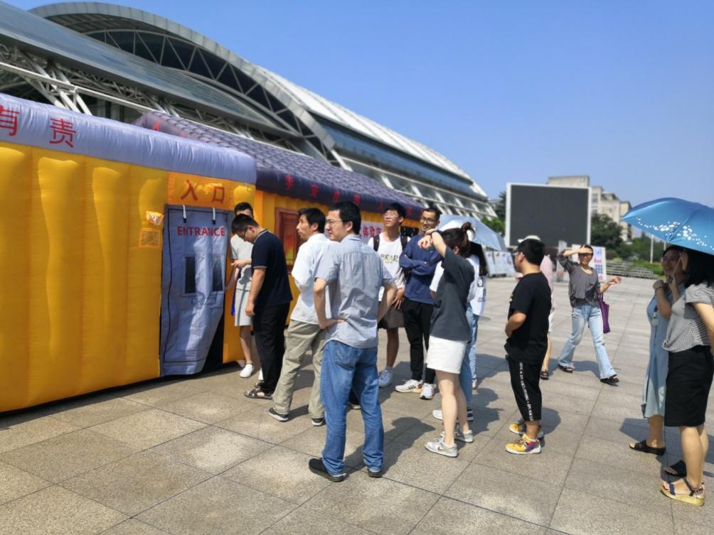 首先,资产与实验室管理处祝红霞处长结合我校具体实际,向大家强调了当下高校实验室安全工作重要性。之后,由保卫处余鹏老师详细介绍了模拟演练仓的用途和使用方法,并让在场人员进行了进仓实际体验。现场师生积极参与,气氛热烈。