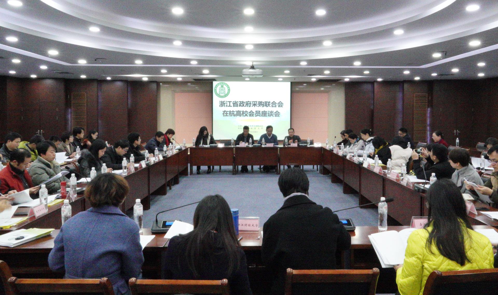 12月28日,浙江省政府采购联合会在杭高校会员座谈会在我校举行,省政府采购联合会副秘书长、省财政厅采购监管处调研员徐剑锋、省财政厅采购监管处副处长俞小青、省财政厅采购监管处科长冯华出席,会议由我校资产管理处处长、省采购联合会副会长童夏雨主持,20余所会员和非会员高校的60余人参加了本次座谈会。