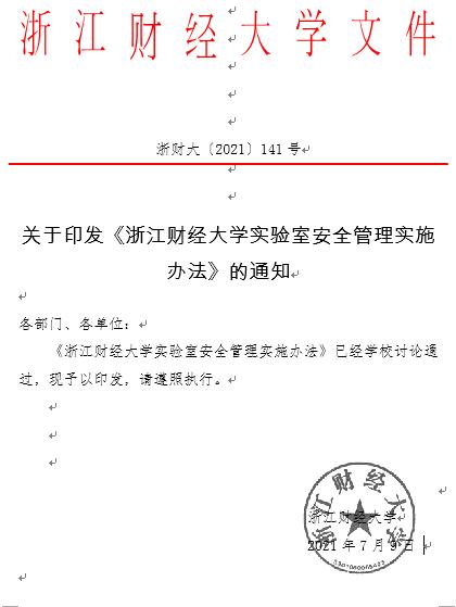 下一条:《浙江财经大学实验室工作暂行办法》(浙财大[2021]140号)