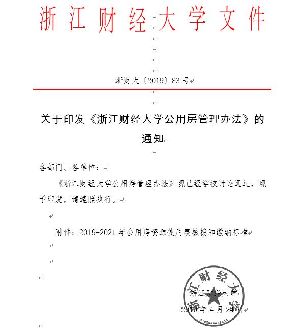 《浙江财经大学公用房管理办法》(浙财大[2019]83号)
