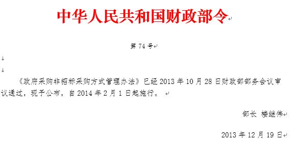 《政府采购非招标采购方式管理办法》(财政部令第74号)