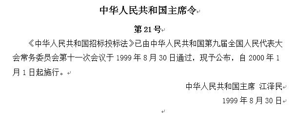 《中华人民共和国招标投标法》(主席令第21号)