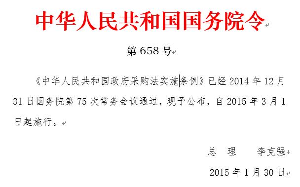 《中华人民共和国政府采购法实施条例》(国务院令第658号)