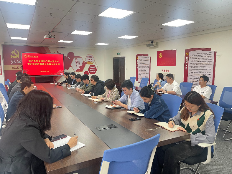 4月19日上午,资产处和采购中心联合党支部在行政楼312会议室召开党纪学习教育工作动员部署会。会议由党支部书记王聪主持。