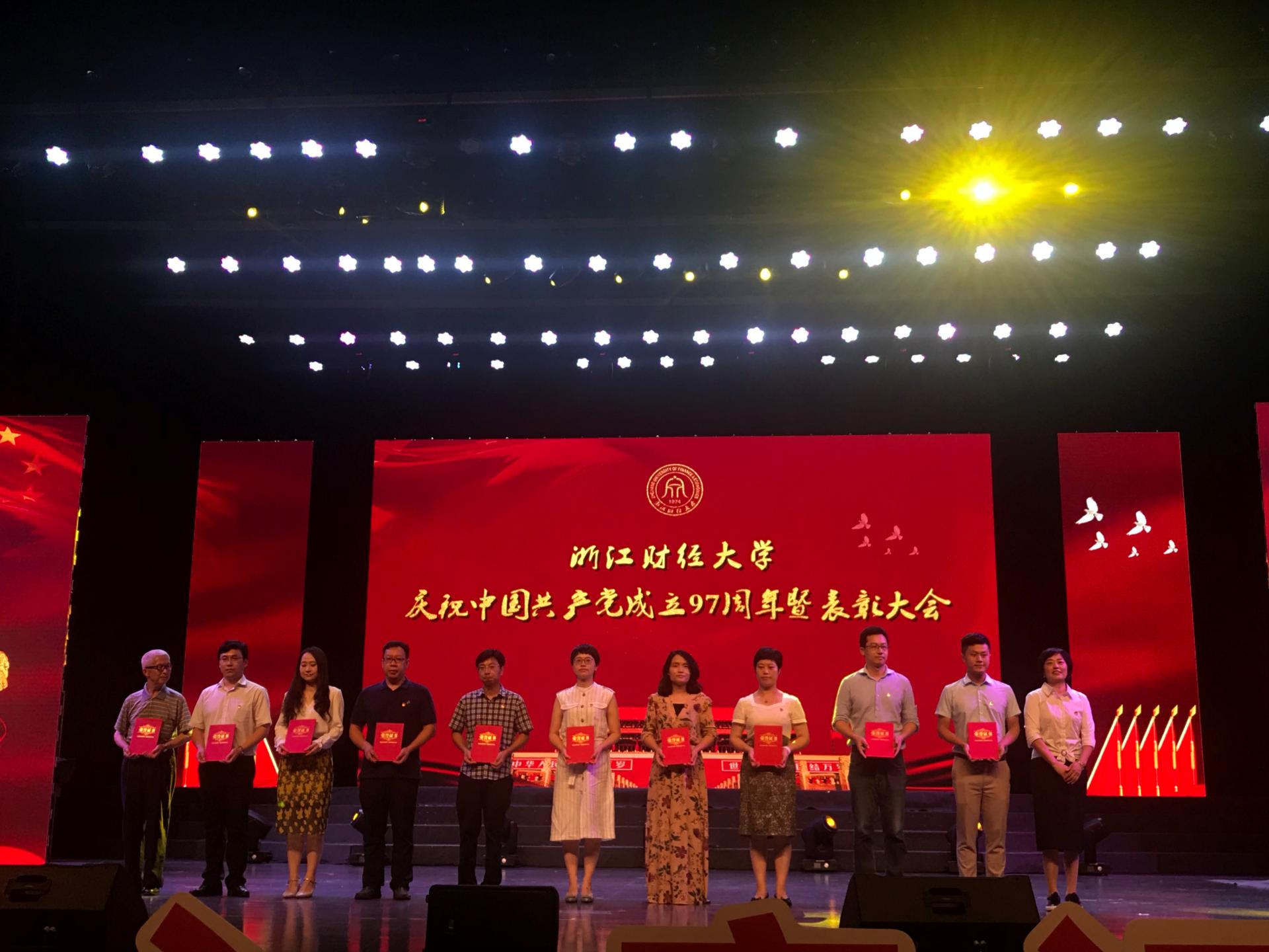 6月29日下午,在“不忘初心、牢记使命”——浙江财经大学纪念中国共产党成立97周年暨表彰大会上,资产与采购中心联合支部荣获校“先进基层党组织”光荣称号,支部书记瞿雅峰同志荣获校“优秀共产党员”称号。