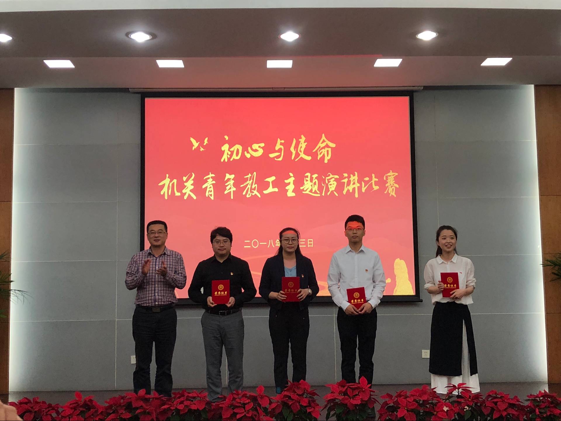 5月3日上午,为迎接“五四”青年节,机关党委组织开展了“初心与使命——机关青年教工主题演讲比赛”。机关21个党支部共选派了22位代表参加本次比赛。经过三个小时激昂澎湃的比拼,本支部选派的陈晨乐同志,以分数排名第四的成绩,喜获本次比赛二等奖。
